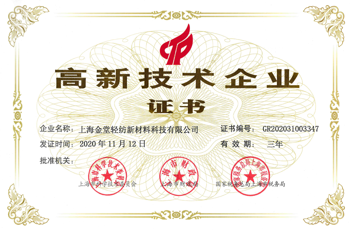 Shanghai Jintang has been certified as a high-tech enterprise in China and has a total of 31 intellectual property rights including invention patents. Its technology has been selected into the catalog of recommended industrial water-saving technology projects by the Ministry of Industry and Information Technology of China, and has won various outstanding honorary awards in China.