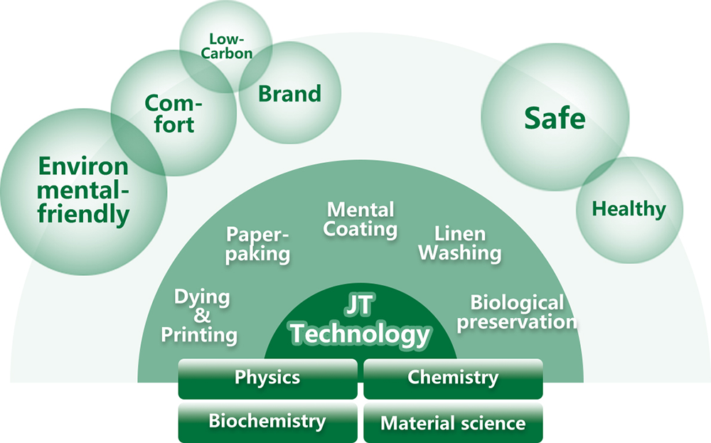 Starting from research and development to reduce alkali oxygen damage in plant fiber printing and dyeing, Shanghai Jintang has derived various new products through its own technology. At present, we are developing products and services in various fields such as textile, building materials, metal forming, public health, and logistics.