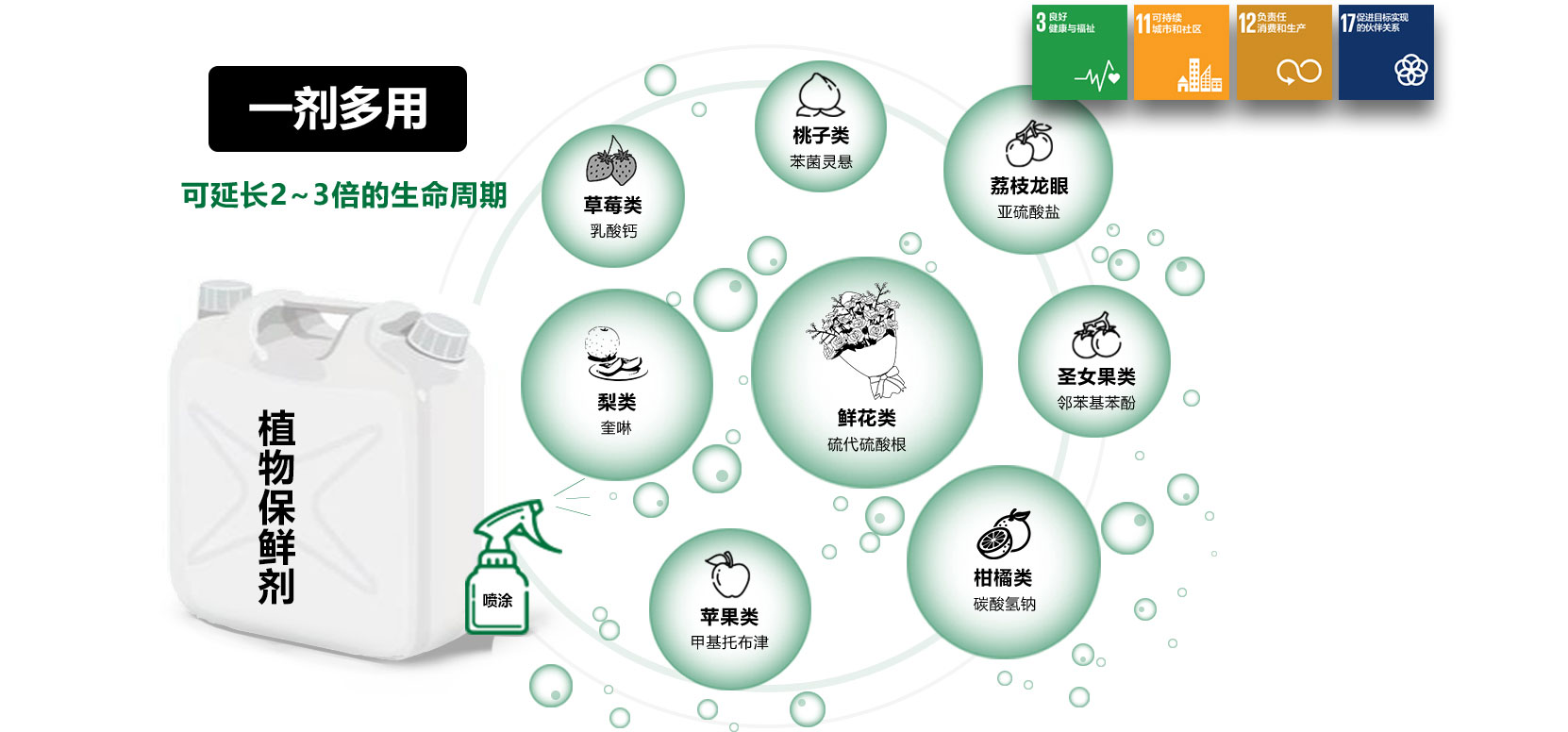 采用新技術作用于包裝上,不直接接觸水果、蔬菜、鮮花等就能延長其2~3倍的生命周期,安全衛生。可有效減少生鮮品的無端浪費。
