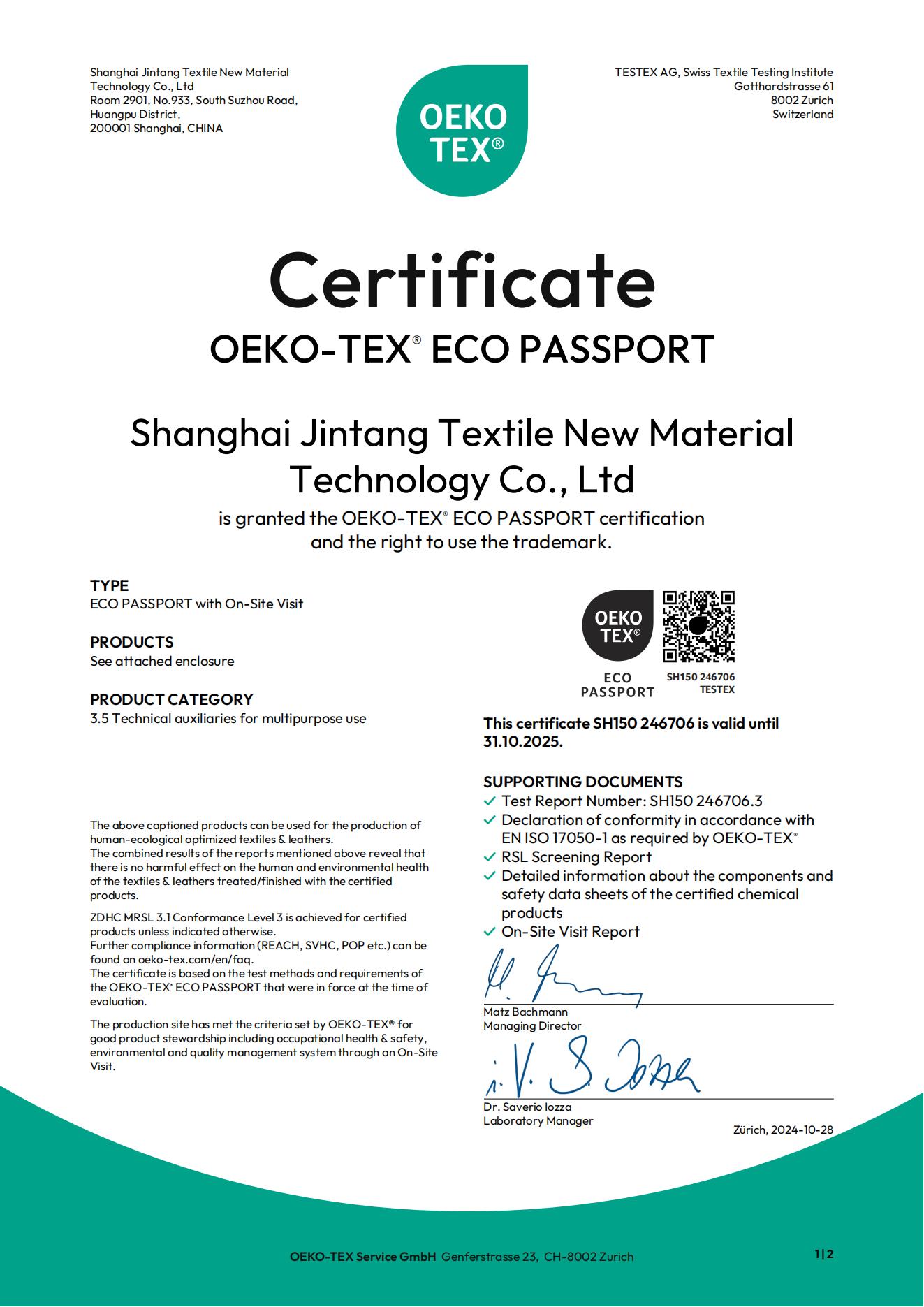 金堂的產品通過包括OEKO-TEX?100、ZDHC等機構的檢測認證。客戶按金堂工藝要求,出現客戶產品質量問題的話,損失可由保險公司賠償。
