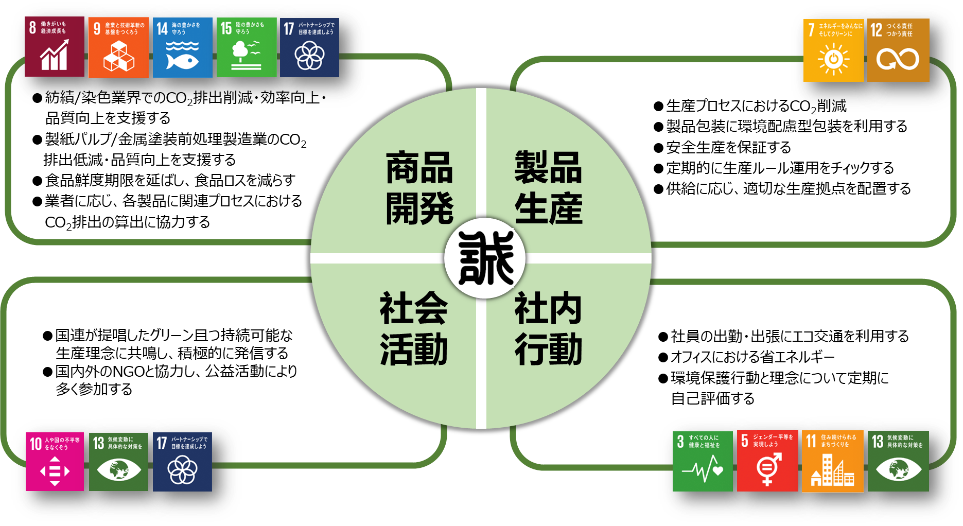 商品開発、製品生産、社內行動及び社會活動の4つの方面から、上海金堂は以下の行動を実施: