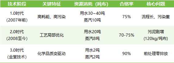 傳統印染長期困于“質量-成本-環保”的惡性循環。金堂V3.0技術通過理論指導下的化學品體系重構與專利技術應用: