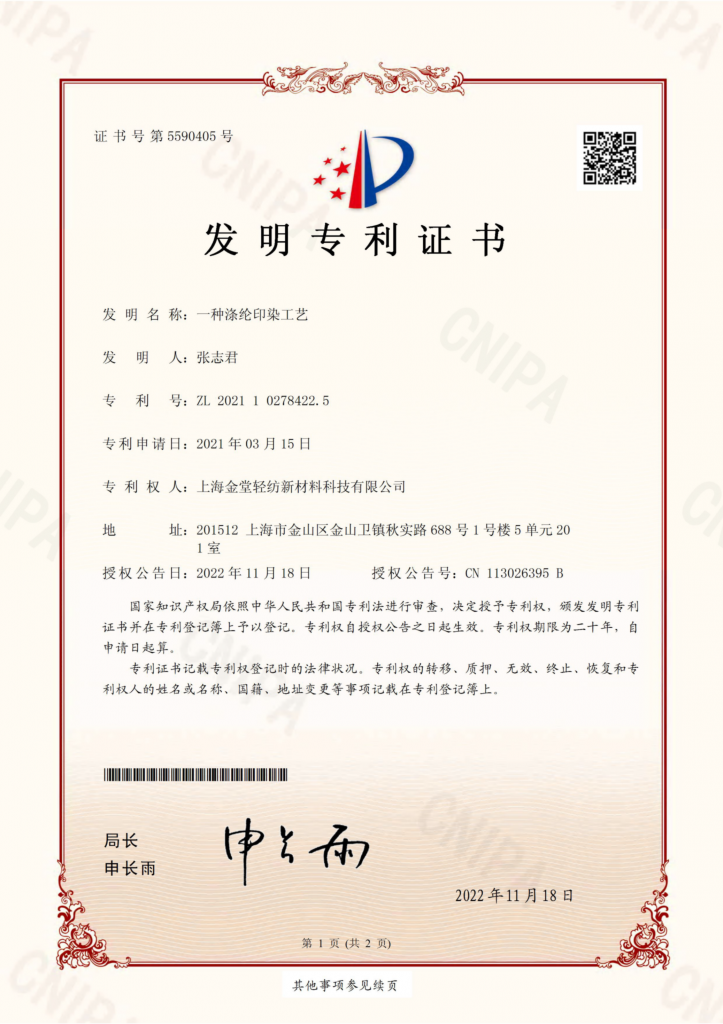 專利權(quán)人:上海金堂輕紡新材料科技有限公司