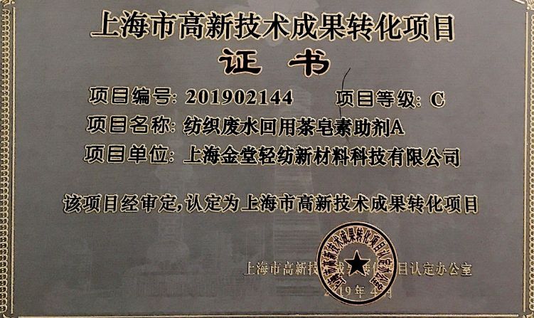 ? ? ? 據了解,今年5月,聯合國教科文組織有關人士曾表示,他們高度關注上海金堂卜公茶皂素助劑創新技術,表示希望該技術項目推動世界各國的印染等傳統企業向綠色、可持續、高質量發展目標邁進。