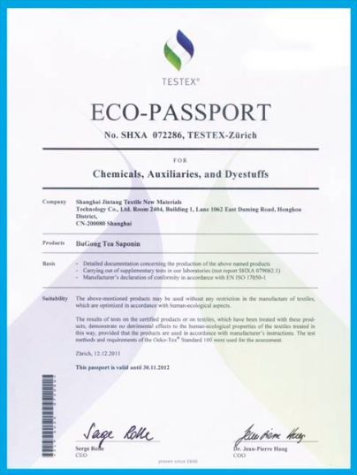 ? ? ? 卜公茶皂素已經通過紡織工程學會組織的國家工信部、環保部、發改委三部委科技成果鑒定,鑒定結果為:國際先進水平。