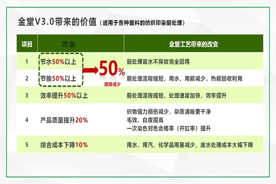 ? ? ? 金堂輕紡新材料的社會責任就在于利用金堂技術包助力紡織印染企業(yè)早日實現(xiàn)雙碳目標、紡織品牌企業(yè)提升品牌價值,同時積極響應ESG5.0標準所呼吁的社會責任。