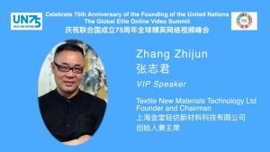 ? ? ? 2020年9月,圍繞2030年可持續(xù)發(fā)展目標(biāo),包括世界各國(guó)政要及精英人士參加的慶祝聯(lián)合國(guó)成立75周年全球精英網(wǎng)絡(luò)視頻峰會(huì)上,張志君代表中國(guó)企業(yè)發(fā)言: