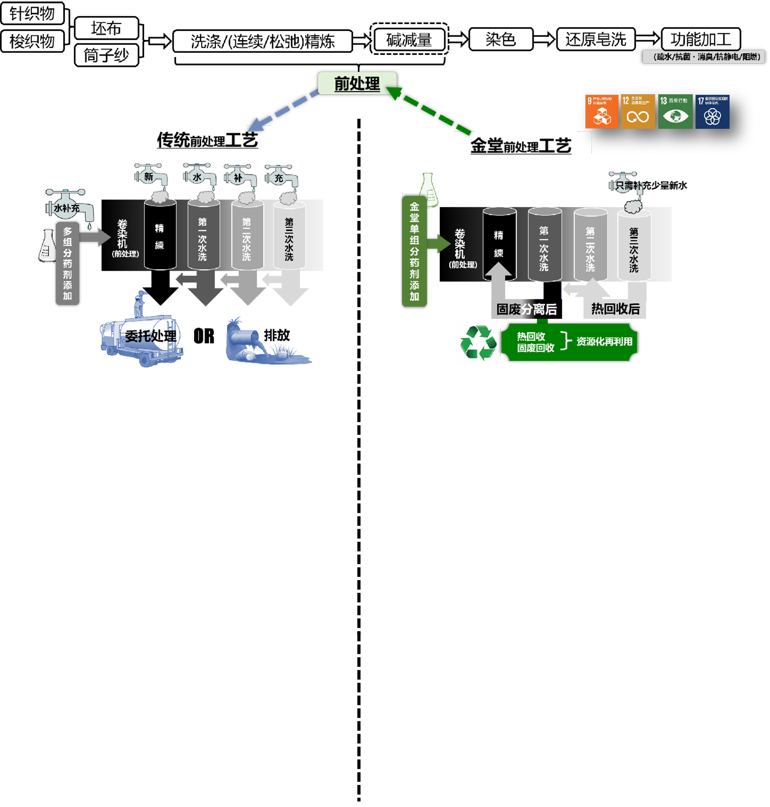 以燒堿為主要化學品的前處理工藝,看似簡單可行卻是一個完全非標、低效、高耗的生產工藝。